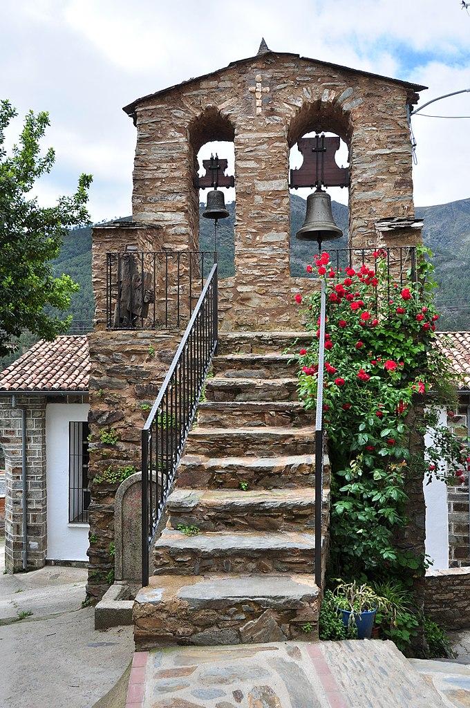 Destaca en Casares de las Hurdes que el campanario no es de la iglesia, ya que este pertenece al pueblo, con lo cual no está en el mismo edificio que la iglesia. También es llamativo el tamaño de este campanario y el fácil acceso a él.